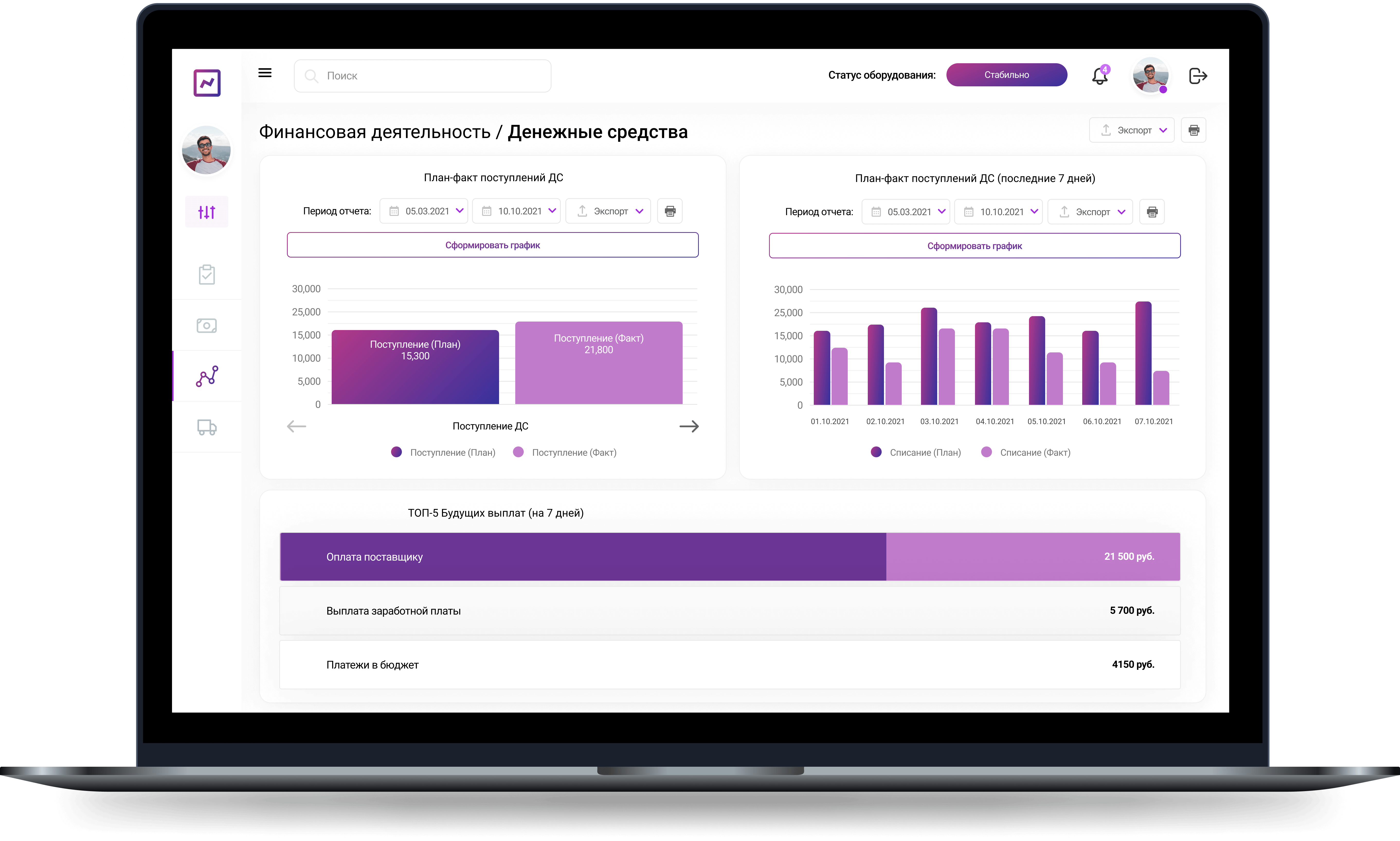 Эффективный инструмент для финансового директора. Панель управления позволяет визуализировать показатели, которые необходимо отслеживать ежедневно для изучения достигнутых результатов, драйверов их роста и прогнозирования развития финансовой ситуации.